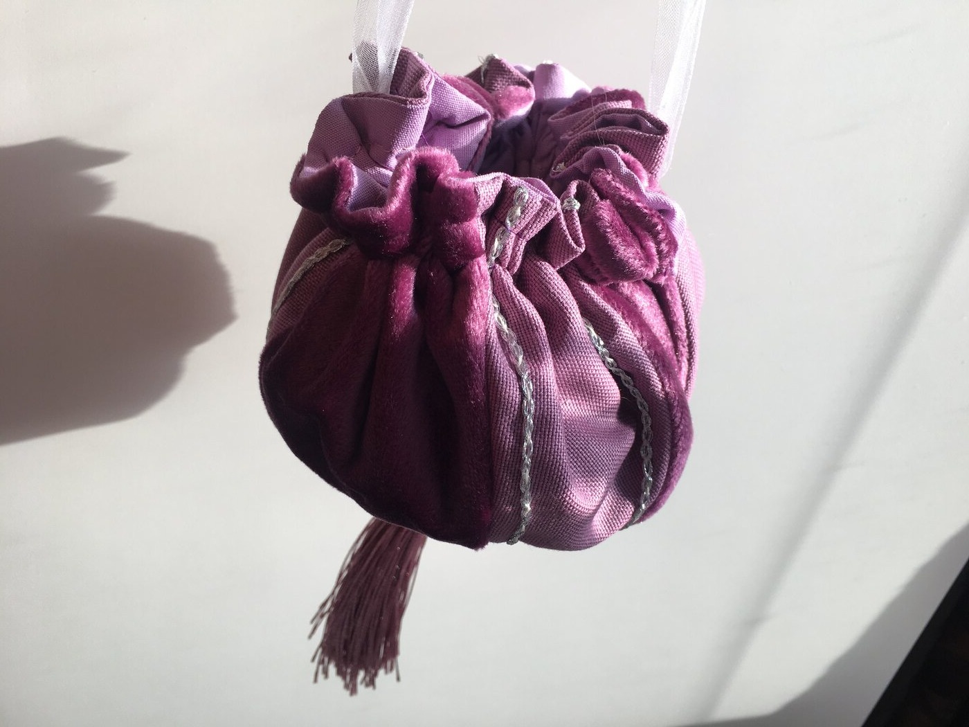 - nit v barvě látek, nůžky, zavírací špendlík na provléknutí šňůry.
